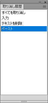 または「やり直し」を選択すると、最後に実行したコマンドが表示されます。すべてのコマンド履歴を表示する場合は、の順に選択するか、Ctrl+K キーを押して取り消し履歴ポッドを表示します。このポッドでは、取り消す操作またはやり直す操作を選択することができます。コマンド履歴はアクティブな文書でのみ表示されます。