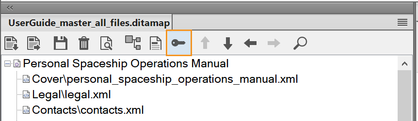 現在の環境でキースペースを読み込んだ後に、キースペース(ditamap)に変更を加える場合は、再表示のアイコンをクリックして、キー参照に加えた変更を表示します。