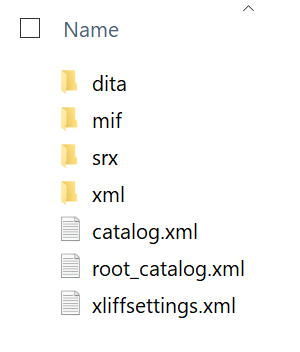 - xliffsettings.xml ファイルには、XLIFF 書き出し設定ダイアログで構成された設定が含まれています。