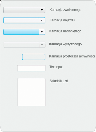 Składnik ComboBox używa poniższych karnacji w celu zaprezentowania swoich graficznych stanów: