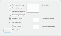 ) próbek koloru oraz zmianę wypełnienia dla pola tekstowego (