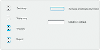 Jeśli obiekt stepper jest włączony, przyciski w górę i w dół wyświetlają swoje stany over po przesunięciu na nie wskaźnika. Po naciśnięciu przycisków wyświetlany jest stan down. Przyciski powracają do stanu over po zwolnieniu przycisku myszy. Jeśli wskaźnik z naciśniętym przyciskiem myszy zostanie przesunięty poza przyciski, powrócą one do pierwotnego stanu.