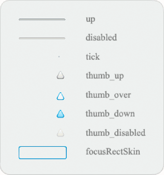 Składnik Slider używa poniższych karnacji, które można edytować w celu zmiany jego wyglądu.