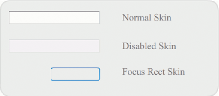 O componente TextInput usa as seguintes capas, cuja aparência você pode alterar editando-as: