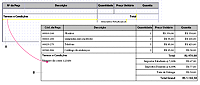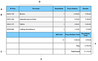 A. Esta é a aparência da tabela no Editor de layout B. Esta é a aparência da tabela na guia Visualizar PDF quando unida aos dados de uma fonte de dados