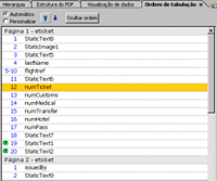 paleta Ordem de tabulaçãoA paleta Ordem de tabulação exibe uma lista numerada de todos os objetos no formulário, onde cada número representa a posição do objeto dentro da ordem de tabulação.