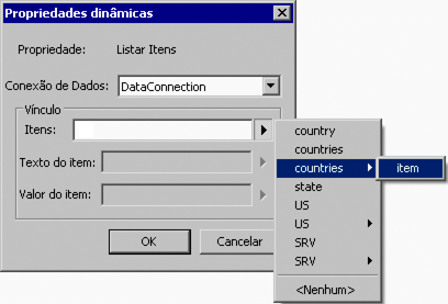 Digite essa string na caixa Itens em vez de selecioná-la. Nota: Em conexões de dados OLEDB, a caixa Itens não fica disponível. Use as caixas Texto do item e Valor do item para selecionar as colunas de banco de dados a serem usadas para preencher a lista.