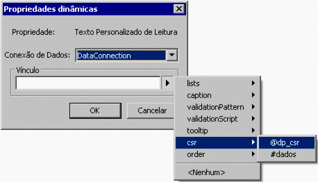 Nota: Se você ainda não estiver conectado a uma fonte de dados, Vínculo de dados padrão será a única seleção disponível na lista Conexão de dados.