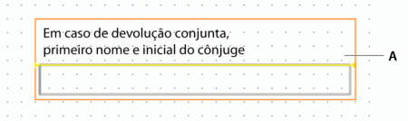 Por exemplo, se você tiver um objeto de texto acima de um campo de texto cuja legenda está definida como nenhum, poderá unir os dois objetos para criar um campo. O texto do objeto de texto se torna a legenda do campo de texto.
