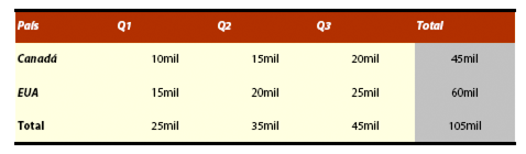 Repita para os totais de Q2 e Q3.