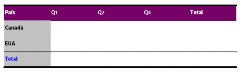 É possível criar seu próprio estilo de tabela de forma a proporcionar uma aparência consistente a bordas, ao sombreamento, ao alinhamento e às fontes em tabelas. Por exemplo, é possível formatar uma tabela semelhante a esta e salvá-la na biblioteca personalizada para poder reutilizá-la em outro formulário.