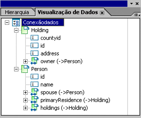 Se a fonte da conexão de dados for baseada no modelo de dados relacional, as associações entre os elementos e atributos são exibidas como nós de dados referenciados. Esses nós têm um ícone exclusivo e são nomeados usando a associação e o nome do elemento de destino ou referenciado.