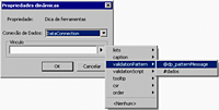É possível preencher uma mensagem de padrão de validação dinamicamente com um valor de uma fonte de dados. Esse procedimento assegura que os usuários informem o valor correto no campo.