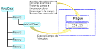 O diagrama a seguir mostra um exemplo de vínculo de campo em que dois objetos de campo no formulário estão vinculados a elementos de dados. O vínculo é ambíguo porque existem várias instâncias dos objetos de campo e seus respectivos dados. É necessário mais processamento para criar correspondência entre a enésima ocorrência de cada objeto e a enésima ocorrência dos dados correspondentes durante a renderização do formulário.