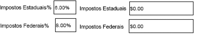 O pedido de compra deve calcular os impostos estaduais e federais apropriados. Para tanto, crie um campo que mostre a alíquota de imposto e um campo calculado que mostre a quantia do imposto.