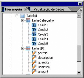 Todas as linhas da tabela estão nomeadas como “Linha1”, acompanhadas por um número de instância padrão. Para poder adicionar os dados em uma coluna, todas as linhas devem estar nomeadas da mesma maneira.
