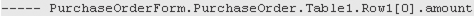Para realizar cálculos, o FormCalc precisa saber que objeto será usado em um cálculo. Nesta etapa, desejamos descobrir o total de todos os dados na coluna Quantia. Se uma célula for selecionada na coluna Quantia, será possível visualizar seu nome interno no Editor de scripts (se o Editor de scripts for redimensionado para ficar maior).