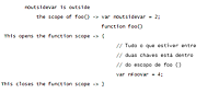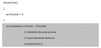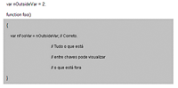Por outro lado, o exemplo a seguir mostra um escopo inválido, pois var nOutsideVar = nFooVar não pode acessar var nFooVar =4 dentro das chaves.