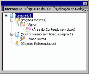 Por exemplo, ao criar um novo formulário em branco, por padrão, o nome do subformulário que representa a página do formulário é um subformulário não nomeado com um valor de ocorrência 0. A ilustração a seguir mostra a hierarquia de um novo formulário com a nomeação padrão de objeto.