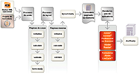 Os eventos de processo podem ser iniciados muitas vezes em resultado de dependências, isto é, de ações associadas a um único evento que, por sua vez, inicia um ou mais eventos adicionais. Usando o exemplo de um usuário que clica em um botão para exibir uma parte anteriormente oculta do formulário e, em seguida, clica no botão, não apenas uma série de eventos interativos e de processo são iniciados para o botão propriamente dito, mas também ocorrem vários eventos de processo para o novo subformulário.