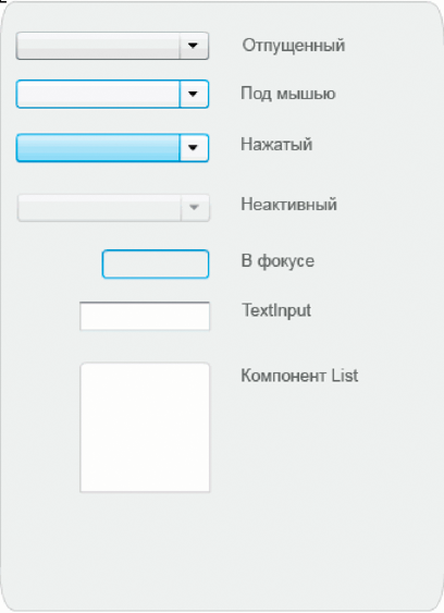 Компонент ComboBox использует следующие обложки для визуализации своих состояний.