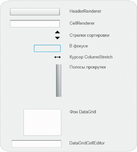 Компонент DataGrid использует следующие обложки для визуализации своих состояний.