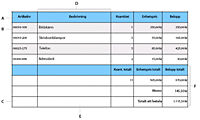 • Tabeller som har ett fast antal rader och kolumner. Det här är t.ex. en enkel tabell med fyra kolumner, fyra rader, en rubrikrad och en sidfotsrad.