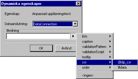 Obs! Om du inte redan är ansluten till en datakälla kan du endast välja Standarddatabindning i listan Dataanslutning.