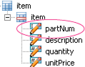 Välj noden partNum på paletten Datavy.