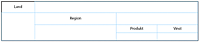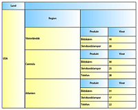 Om du t.ex. tillhandahåller produkter som bildskärmar, skrivbordslampor och telefoner kanske du vill kunna se vilket land och vilken region som säljer flest produkter. Du kan skapa den här tabellen som innehåller en kapslad tabell inne i en kapslad tabell i huvudtabellen: