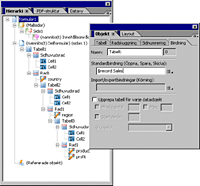 Välj t.ex. Table1 på paletten Hierarki. Klicka sedan på fliken Bindning på paletten Objekt och skriv $record.Sales i rutan Standardbindning (Öppna, Spara, Skicka).