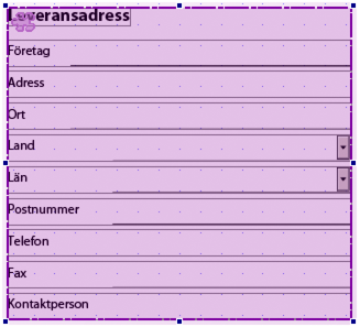 Fragmentreferenser i LayoutredigeringObjektgränser visas runt fragmenten och fragmentreferenserna. Du kan ange färg för objektets gränser på paletten Rithjälpmedel.