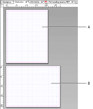 Mallsidorna tillhandahåller format och bakgrund för sidorna. Alla nya formulärdesigner skapas med en standardmallsida, som används för den första sidan. De övriga sidorna formateras enligt standardmallsidans layout, såvida du inte skapar och använder en annan mallsida.
