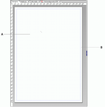- Objekt kan placeras på en sida innanför innehållsområdets avgränsningar. Kantlinjen representerar innehållsområdets gräns.
