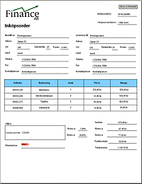 När du är klar med självstudien kommer du att ha skapat ett formulär som ser ut som det här inköpsorderformuläret, sammanfogat med data.