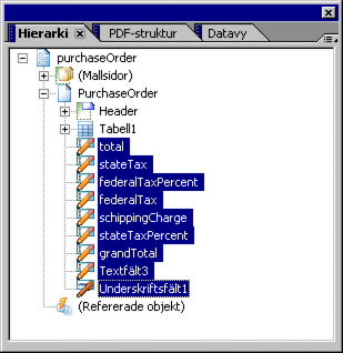 Nu bör du se det här på paletten Hierarki om du komprimerar allt under PurchaseOrder.