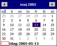 Använd datumfältet för att underlätta för användarna att välja datum. Den här kalendern är vad användare ser i formuläret när de klickar i listan för inköpsorderdatum när formuläret visas i Adobe® Acrobat®.