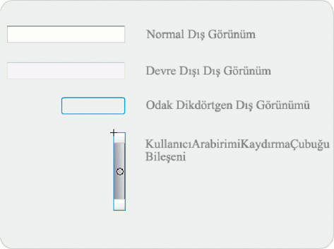 Bir bileşendeki ScrollBar kaplaması değiştirildiğinde, ScrollBar öğesini kullanan diğer tüm bileşenler için de ScrollBar kaplaması değiştirilir.