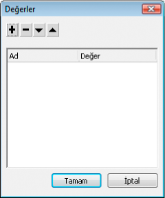 Başlangıçta boş bir Array öğesi görüntüleyen değer hücresini çift tıklatırsanız, veri sağlayıcısı oluşturmak için birden çok etiket ve veri değeri girmenize olanak sağlayan Değerler iletişim kutusunu açarsınız.