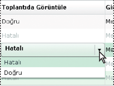 Toplantıda Göster sütunu için kullanılabilir durumdaki seçenekler